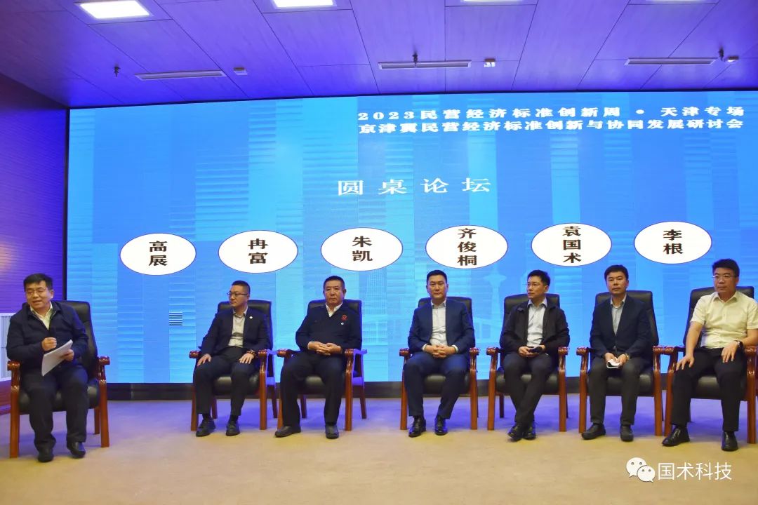 在圆桌论坛环节,来自京津冀三地的六位企业家围绕“高质量发展实体经济,高标准赢得市场竞争”主题进行交流,分享标准化工作案例经验和标准创新路径。其中,袁国术就国术科技如何开展标准创新工作,并以此提升企业和产品的竞争力,进行了经验分享。