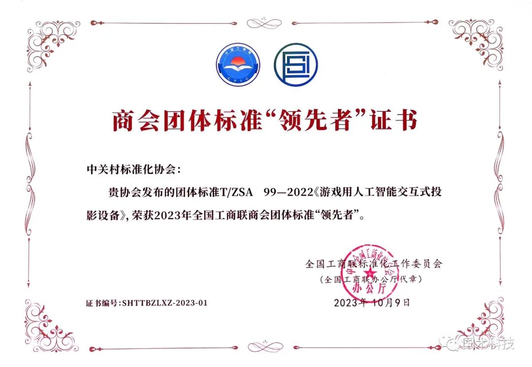 国术科技是一家专注于科普产品研发和智造的“专精特新”企业。基于多年的生产管理实践,国术科技牵头制定了《游戏用人工智能交互式投影设备》团体标准,内容属于智能机器人及相关硬件和软件领域,填补了国内外该类产品标准的空白。