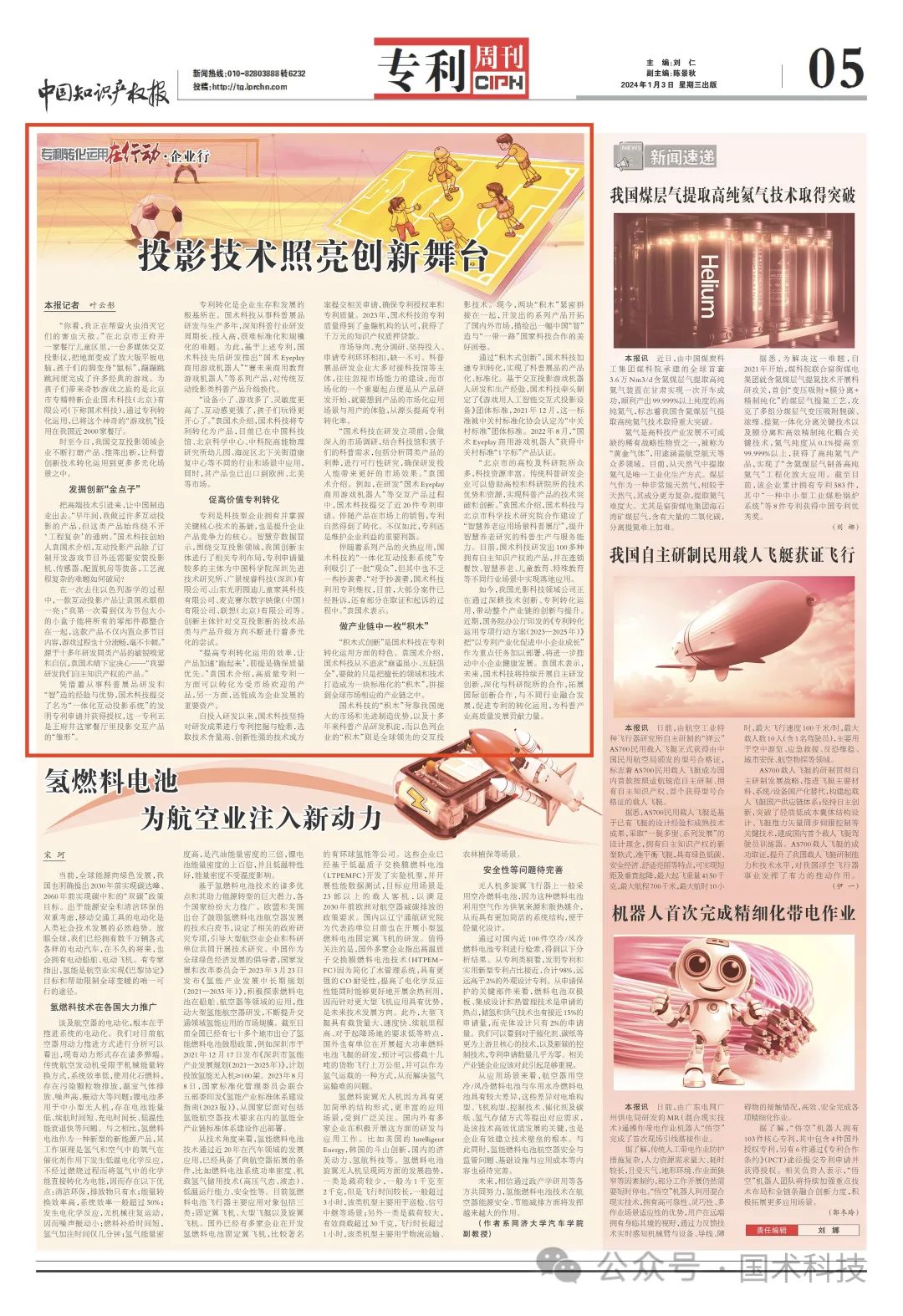 把高端技术引进来,让中国制造走出去。“早年间,我做过许多互动投影的产品,但这类产品始终绕不开‘工程复杂’的通病。”国术科技创始人袁国术介绍,互动投影产品除了订制开发游戏节目外还需要安装投影机、传感器、配置机房等装备,工艺流程复杂的难题如何破局?在一次去往以色列游学的过程中,一款互动投影产品让袁国术眼前一亮:“我第一次看到仅为书包大小的小盒子能将所有的零部件都整合在一起,这款产品不仅内置众多节目内容,游戏过程也十分流畅,毫不卡顿。”源于十多年研发同类产品的敏锐嗅觉和自信,袁国术暗下定决心——“我要研发我们自主知识产权的产品。”凭借着从事科普展品研发和“智”造的经验与优势,国术科技提交了名为“一体化互动投影系统”的发明专利申请并获得授权,这一专利正是王府井这家餐厅里投影交互产品的“雏形”。专利转化是企业生存和发展的根基所在。国术科技从事科普展品研发与生产多年,深知科普行业研发周期长、投入高,很难标准化和规模化的难题。为此,基于上述专利,国术科技先后研发推出“国术Eyeplay商用游戏机器人”“赛未来商用教育游戏机器人”等系列产品,对传统互动投影类科普产品升级换代。“设备小了、游戏多了、灵敏度更高了、互动感更强了,孩子们玩得更开心了。”袁国术介绍,国术科技将专利转化为产品,目前已在中国科技馆、北京科学中心、中科院高能物理研究所幼儿园、海淀区北下关街道康复中心等不同的行业和场景中应用,同时,其产品也已出口到欧洲、北美等市场。