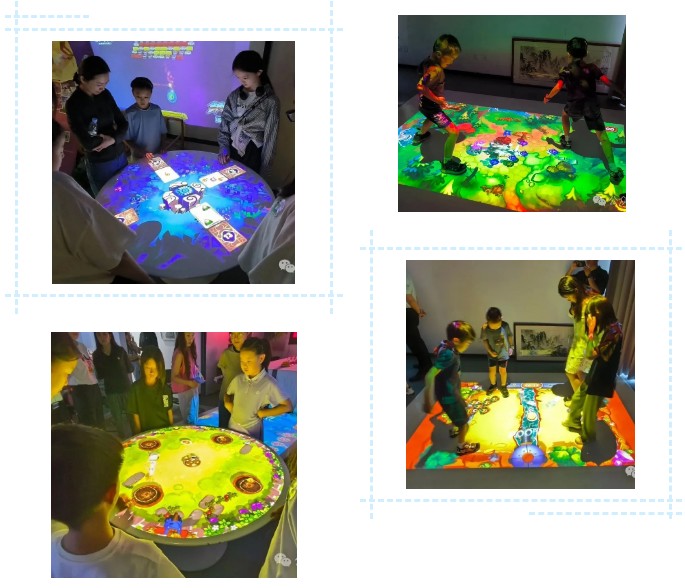 国术科技科普老师首先向大家介绍了游戏玩法以及注意事项。一切准备就绪,孩子们已经跃跃欲试,准备大展身手啦!在科普老师的指导下,孩子们分组轮流体验了需要团队协作的“火龙联盟”和两队PK的“沙漠之战”等地面交互科普节目,以及四人同台竞技的“怪兽牌局”“鸡妈妈的旅行”等桌面交互科普节目。比赛之余,指导老师为满足孩子们的好奇心和探索欲,以“点菜式”的形式,让孩子们选择心仪的游戏节目进行体验,现场乐趣横生。家长们也被满场跑跑跳跳的孩子感染,和孩子们一起投入其中,玩得不亦乐乎。