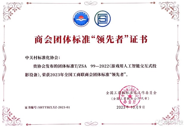 研发过程中,国术科技重视标准化建设,并基于自身研发及生产经验牵头制定了《游戏用人工智能交互式投影设备》团体标准。2021年12月,这一标准入选“中关村标准”,填补了国内外该类产品标准的空白。2023年10月,该标准被评为“2023年全国工商联商会团体标准‘领先者’”。