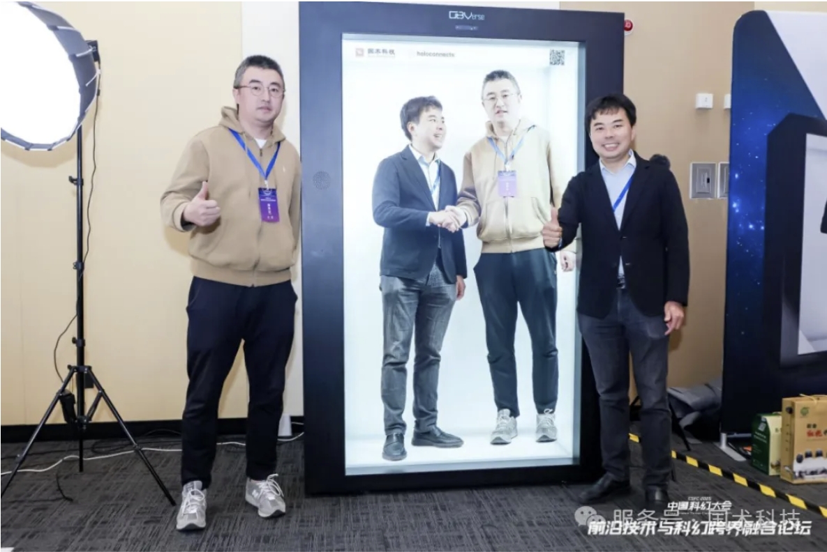 3月29日,2025中国科幻大会·前沿技术与科幻跨界融合论坛在北京市石景山区首钢园四高炉举办。该论坛由北京市科学技术委员会、中关村科技园区管理委员会主办,北京数字创意产业协会、北京绿洲数智科技有限公司承办,北京动漫游戏产业协会协办。论坛聚焦人工智能驱动产业变革的前沿趋势展开深度研讨,共同探寻科幻文化全球化传播的创新路径。国术科技受邀参加本次活动,展示了与荷兰Holoconnects公司共同研发的人工智能全息互动体验产品——“OBVerse奥比全息舱”。