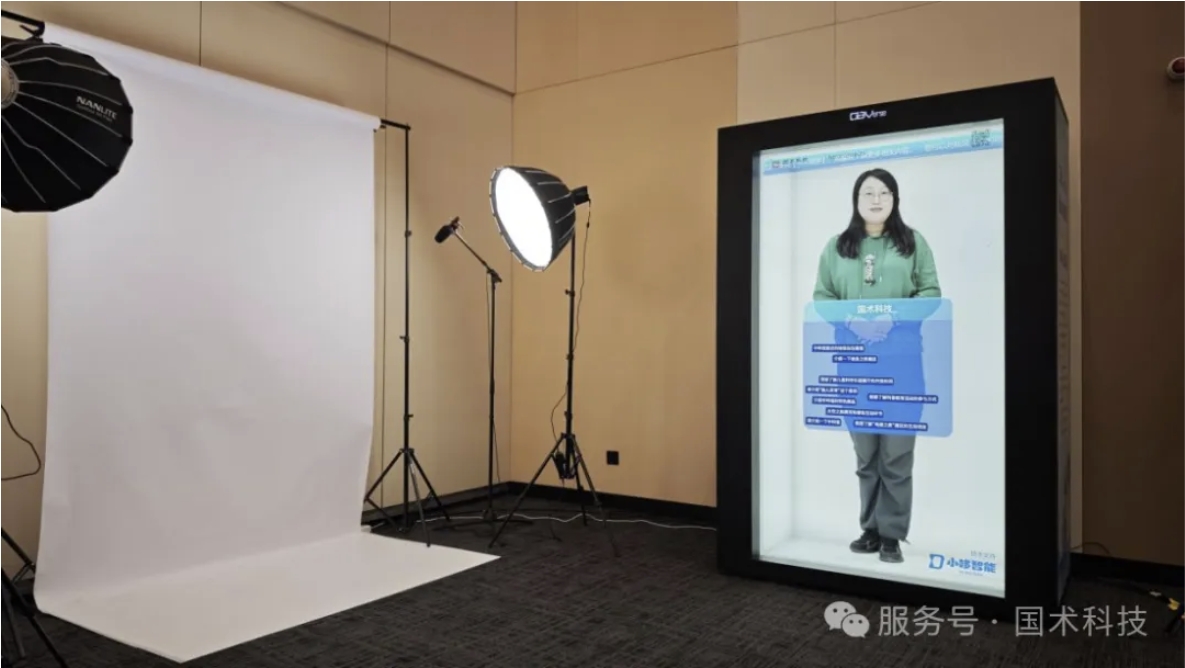 现场看到,以“OBVerse奥比全息舱”为载体,国术科技还展示了与战略合作伙伴小哆智能共同研发的智能体数字人“小术”。“小术”智能体所搭载的2D真人数字人,是通过“OBVerse奥比全息舱”的高效复刻技术实现的,它融合了本地化部署与云端DeepSeek大模型协同能力,可实现实时互动问答,让观众体验到虚实交互的智能化跃迁。