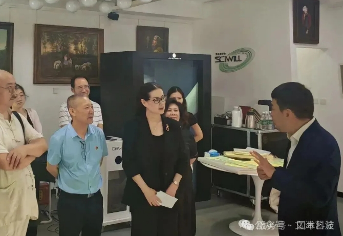 区文联组织书法、美术、摄影、戏曲、曲艺等协会的艺术家党员代表,参观国术科技(北京)有限公司,体验人工智能全息舱技术,感受AI为艺术创作、表现与互动带来的变革,围绕拥抱AI新技术展开交流和探讨。海淀区委宣传部副部长、文联主席刁伟梅、副主席曹彦音,国术科技董事长袁国术、党支部书记彭小国,北下关街道两新党委副书记陶根良、楼宇党群服务中心站长王建民,艺术家党员代表陈维平、朱虹、徐志存、覃世明、尹松健、李洪滨、聂景云出席活动。
