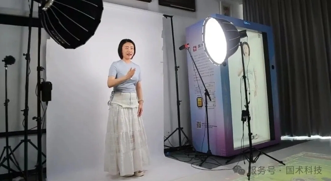 据国术科技董事长袁国术介绍,国术科技始终坚持打造“专精特新”的科普产品,本次活动中体验的人工智能全息舱技术,可以提供实时、高清、全息的影像记录,为艺术与科技融合带来更多可能性。