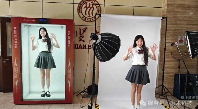 在活动现场,“OBVerse奥比全息舱”化身为承载着师生情感、寄托未来期望的“时光胶囊”,营造出一种超越时空的毕业仪式氛围。凭借其4K超高清的裸眼3D视觉效果,“OBVerse奥比全息舱”吸引了众多师生前来体验。毕业生们依次站在指定区域,通过“OBVerse奥比全息舱”配套的复刻系统,创建自己的1:1真人“数字分身”。他们还录制了对未来的寄语,用全息舱捕捉此刻对未来的美好憧憬。同时,多位师长也通过全息舱向毕业生们传递了充满深情的祝福,使得师生间的情谊更加深刻而难忘。