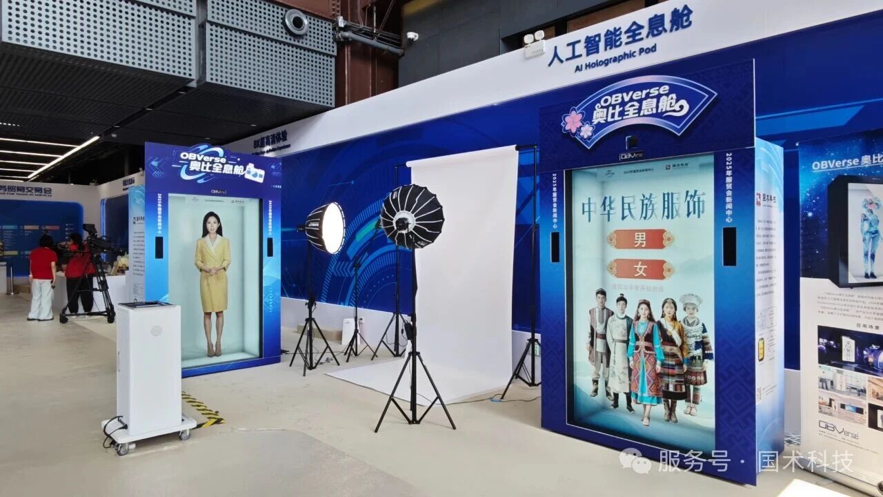 9月10日至14日,由商务部和北京市人民政府共同主办的2025年中国国际服务贸易交易会(以下简称“服贸会”)在北京首钢园举办。本届服贸会以“数智领航,服贸焕新”为年度主题,聚焦人工智能、医疗健康、智慧物流、商旅文体健融合发展等专业领域,展示70余个国家和国际组织的创新发展成果。国术科技受邀,携“OBVerse奥比全息舱+复刻数字人”“全息舱内与偶像合影”“民族服饰AI换装”“国术Eyeplay商用游戏机器人(移动版)”等人工智能创新科普产品亮相服贸会新闻中心,为数千名中外记者带来沉浸式的智能交互新体验。