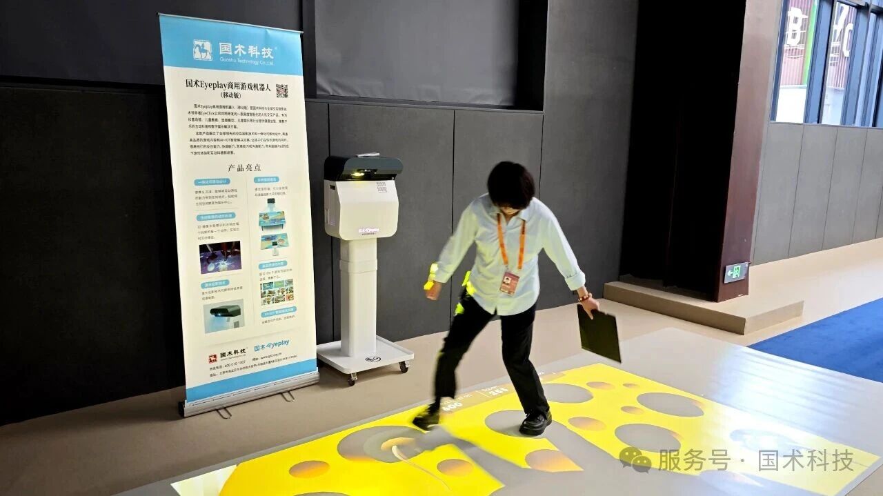 现场看到,国术科技参展的科普产品还有“国术Eyeplay商用游戏机器人(移动版)”。该产品融合全球领先的人工智能交互投影技术和一体化可移动设计,运行流畅,能投射出丰富的趣味科普节目,营造出沉浸式的科普互动空间,不仅能够帮助孩子在健康运动中快乐学习,还能锻炼和提高孩子自身的反应能力、协调能力、思维能力和社交沟通能力。国术科技的交互投影科普游戏机器人已成为科技馆、教育、餐饮等行业提升用户体验及获客引流的利器。2021年12月,国术科技主导制定的《游戏用人工智能交互式投影设备》团体标准入选“中关村标准”,填补了国内外该类产品标准的空白。2022年8月,“国术Eyeplay商用游戏机器人”获得中关村标准“1字标”产品认证。2023年10月,该标准被评为“2023年全国工商联商会团体标准‘领先者’”。